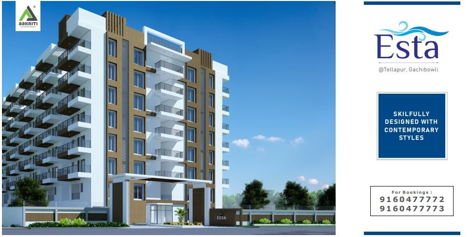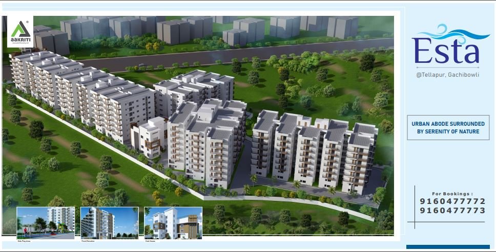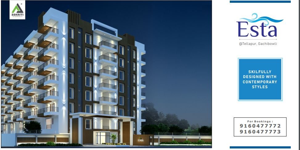 Aakriti Esta is located in the Tellapur region of Hyderabad and lies very close to the Gachibowli Financial District. It has all the necessary establishments nearby including shopping malls, hospitals, entertainment hubs, etc., all within a 10 Km radius. You will feel like you are living in a beautiful township where your work life and social life have a harmonious existence. While we ensured that the price range was in check, we’ve also ensured that the quality of all the material used while building the project is of top grade. All the material has gone through several quality tests and is meant to last a lifetime. We’ve also adjusted and created our designs to make sure all the apartments are 100% Vastu compliant, keeping in mind the sentiments of our customers.