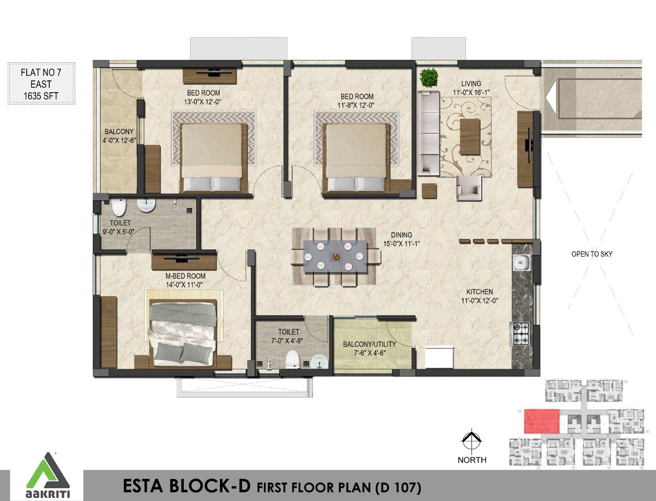 • Flat Size1064 – 1752 Sft